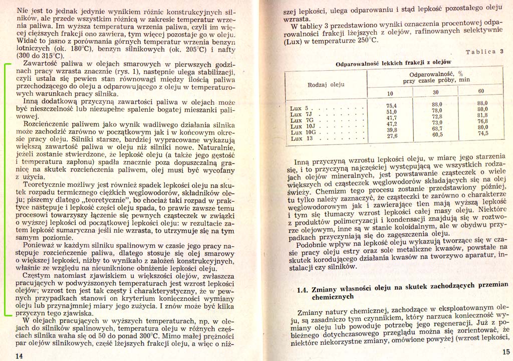 Na obronę "januszy" jest fakt, że wraz z odparowaniem lekkich frakcji, oprócz lepkości, w końcu też zmieni się i gęstość (więc jakaś "mądrość ludowa" w myleniu lepkości z gęstością czasem jest). Zakończenie, dalej są wywody natury chemicznej i koniec rozdziału. Na uwagę zasługuje wzmianka o działaniu katalitycznym metali na tradycyjne oleje mineralne. Chodzi np. o miedź, której się nie powinno w takich układach stosować (choćby jedna uszczelka, podkładka pod korek, wspomaga swą obecnością reakcje chemiczne degradacji oleju). Załącznik: