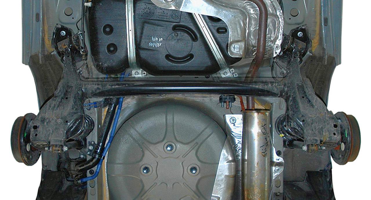 Do śrub (ich gwintów) mocowania belki do podwozia jest dostęp od góry pod tylnym siedzeniem. Trzeba tylko przebić izolację, wytłumienie i widać wszystkie 3 śrubki wystające.