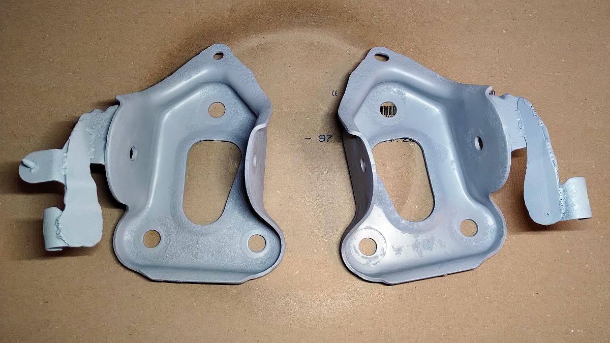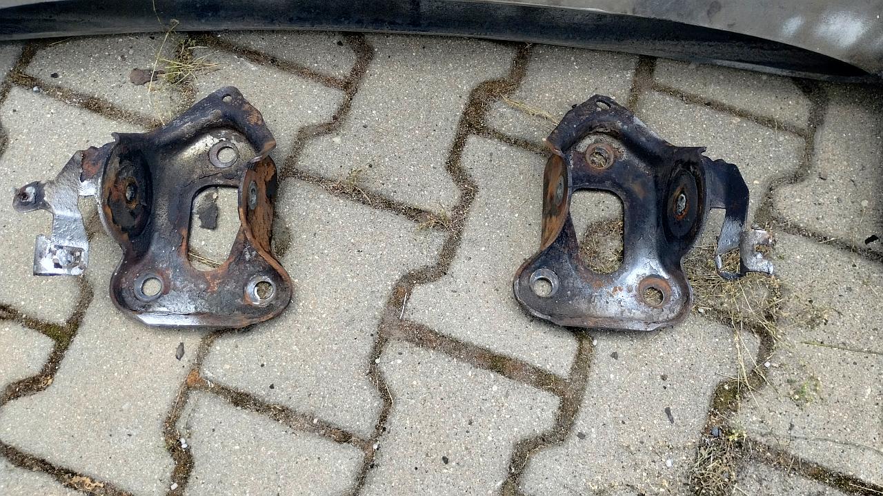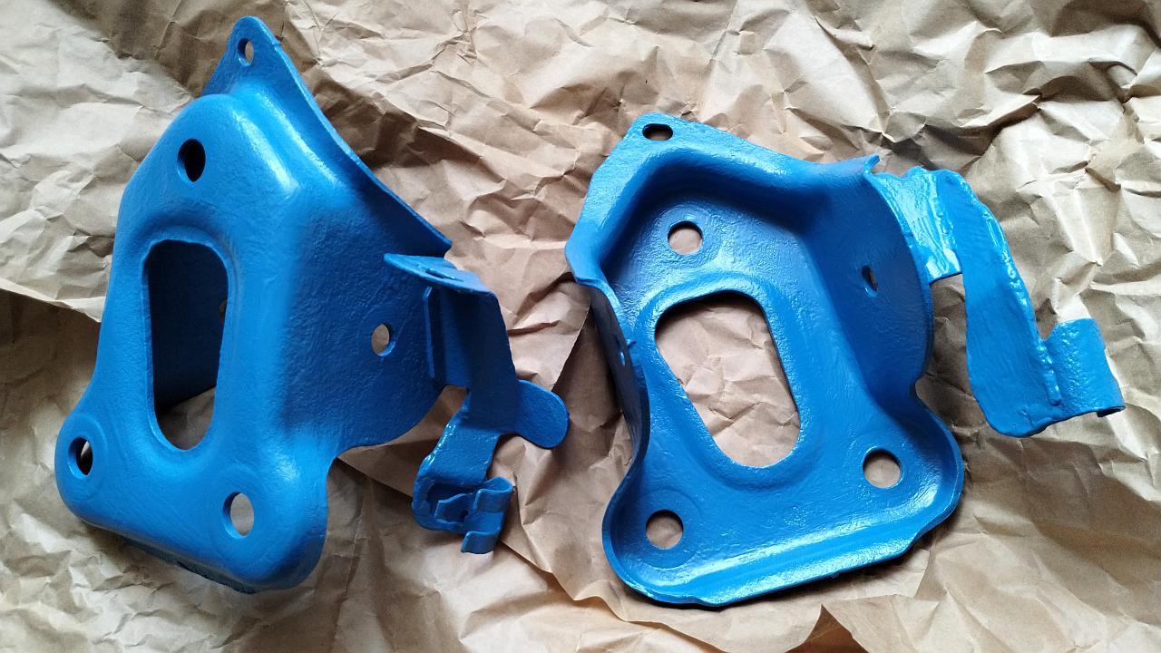 W każdym razie stare mocowania na wszelki wypadek (na zapas) zostały odświeżone. Piaskowanie, podkład, farba ("pokrycie" lepsze). Łaty polepione byle jak. Widać też porowatość (mimo piaskowania ciągle jakiś syf wyłaził z materiału).