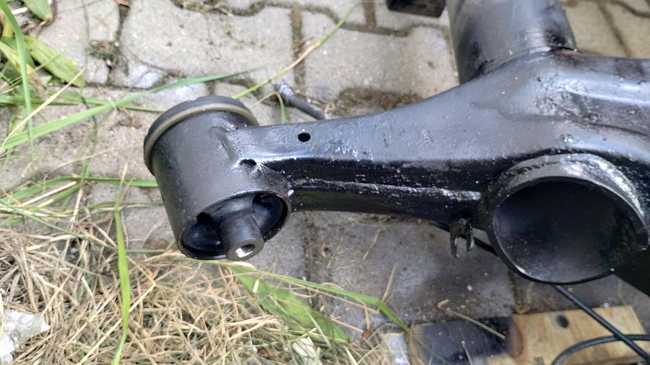 Ale po co/dlaczego ta naprawa, czy wymiana? Historia złoma: w roku 2018 już była powierzchniowa korozja, na odwal-się wyszczotkowana i zakonserwowana (farbą). Oraz pierwsza (i jedyna) uwaga diagnosty na przeglądzie, że coś tam się "pajęczynka" pęknięć pokazuje na tulejach (ale jeszcze OK, "Pozytyw", zerwane nie są).