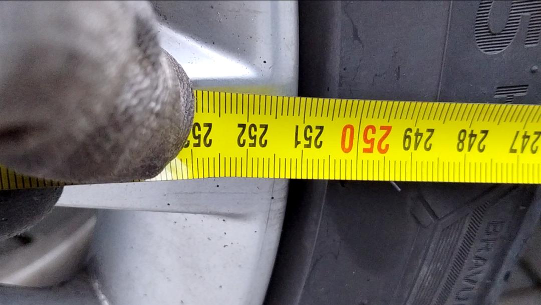 No i tu już wychodzi, że belka przestawiona (oby tylko, bo może być i zgięta, czy chociażby czop jednego z kół). Nie ma powodu do takich różnic (milimetr sobie darujemy, ale nie 5 mm). Co ciekawe mierzyłem inne przypadkowe Grande i miało takie same wartości przestawienia, ale w drugą stronę przegięcie. To można "przykryć" zbieżnością przodu, będzie prosto jechać. Możecie nie wiedzieć, że coś jest źle. Zmierzcie u siebie i dajcie znać (czy macie krzywo i ile).