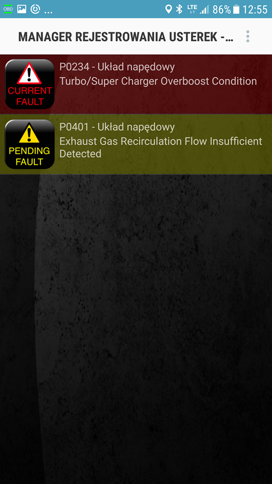Podłączyłem obd do punciaka i wyświetliło mi takie komunikaty jak na zdjęciu. Co to jest? Jeden to na pewno EGR bo już od dawno z nim walcze.