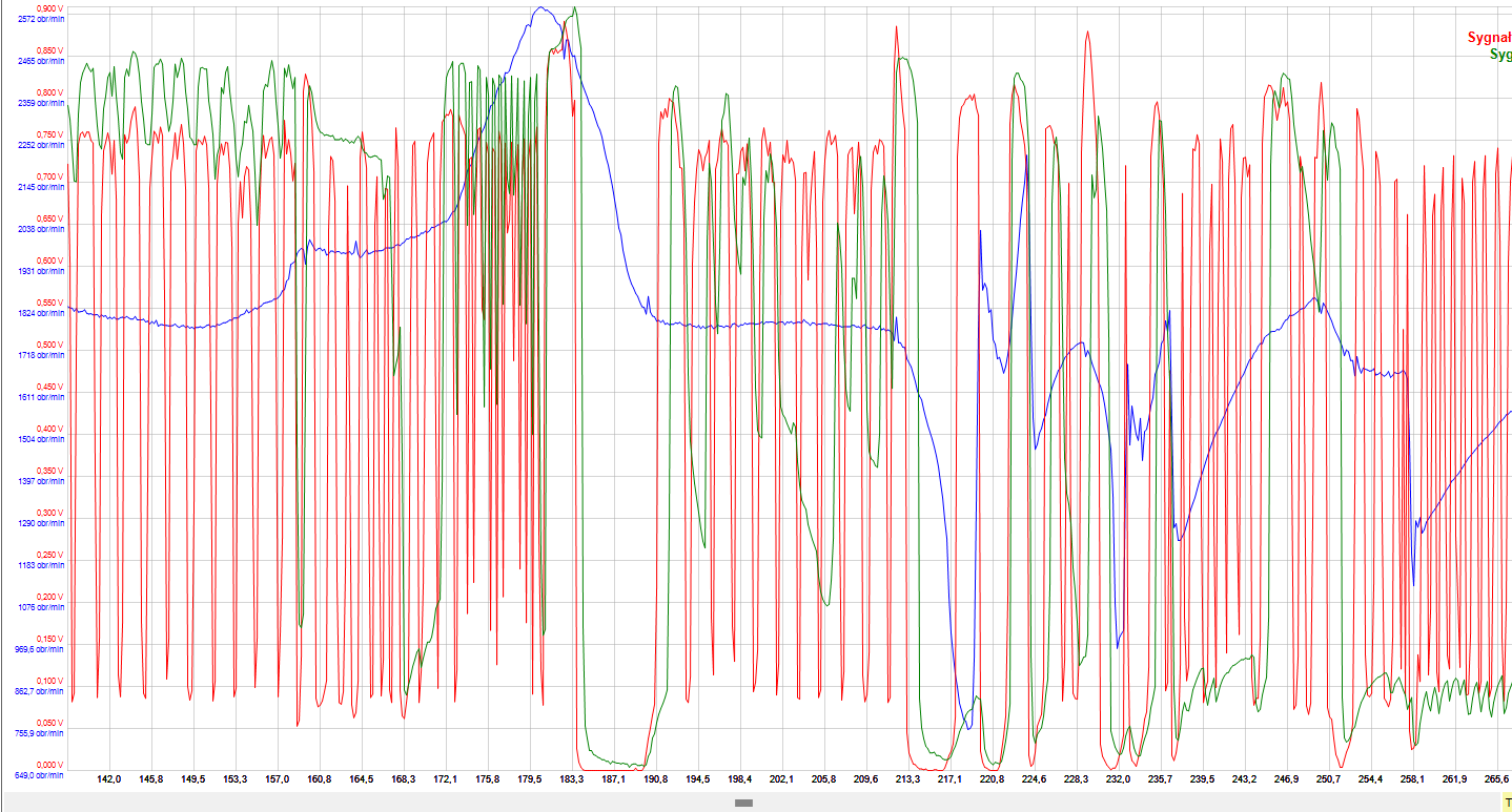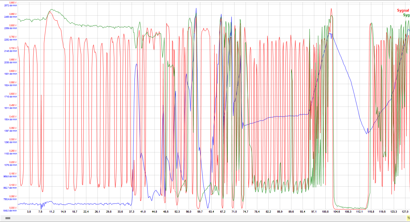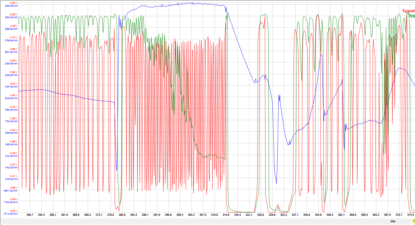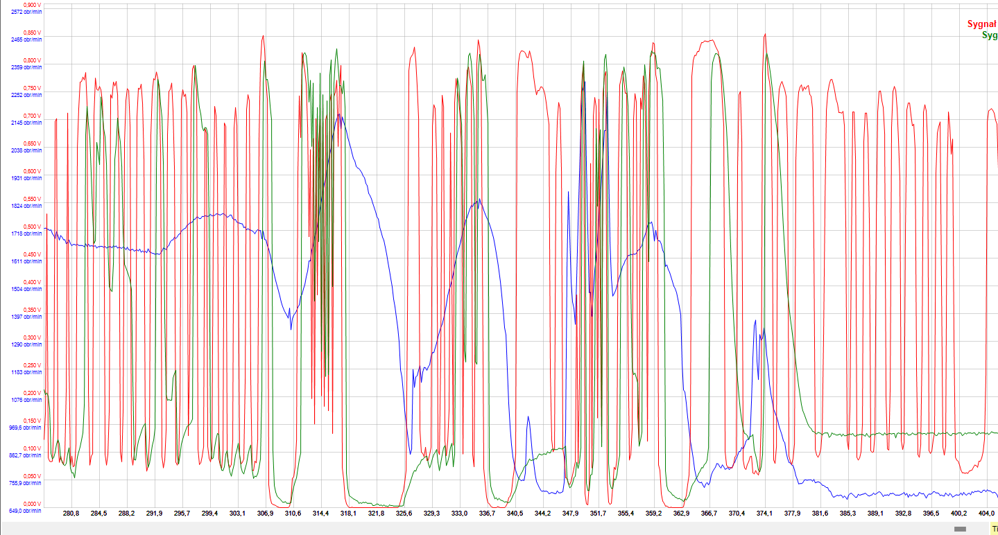 Cześć, jest w stanie ktoś ocenić jak pracują sondy? Załączyłbym wykres w .csv, ale nie pozwala mi tutaj wrzucić. Wrzucam więc scr z MES'a. To normalne aby sonda na LPG tak pracowała? Na benzynie chyba jest coś nie tak, bo dziwne są te delikatne spadki napięcia na sondzie za katem, podczas jednostajnej pracy.