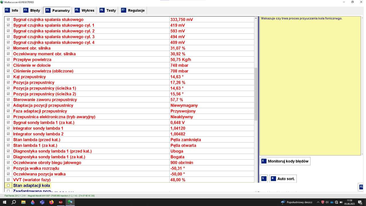 mes coś wykresu sond mi nie pokazuje, może jeszcze to ogarne, na razie to. dzieki. W czasie jazdy, silnik rozgrzany.